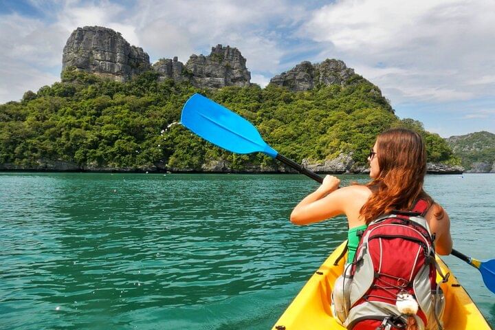 This full-day boat tour is one of the most beautiful and popular sea destinations. Discover the Angthong Marine Park (Golden Basin) archipelago with its 42 islands. On this trip you get the opportunity to explore the rock and cave landscapes with a kayak. You will also visit the green emerald lagoon and the island of Wua Talap (sleeping cow's eye) with its incredible viewpoint over the whole Angthong national park and a remarkable stalactite cave. As well you have enough time for sunbathing, swimming and snorkeling at the most beautiful beaches